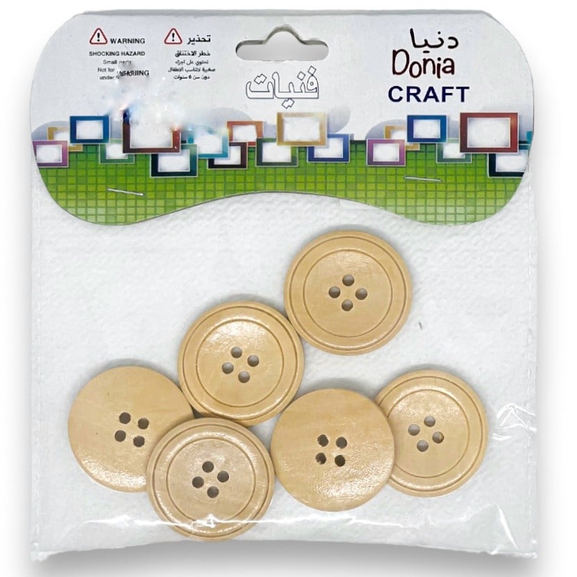 ازرار خشبية مستديرة 3 سم - 6 قطع