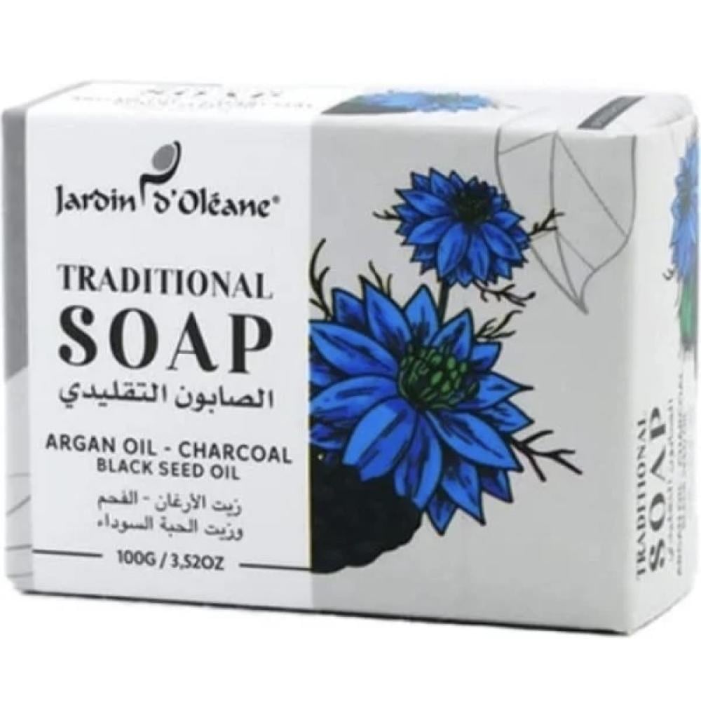 امنح بشرتك تجربة فاخرة مع صابون جاردن أوليان التقليدي بزيت الأرغان، الفحم، وزيت الحبة السوداء، وتمتع ببشرة نظيفة، ناعمة، ومغذاة بعمق.