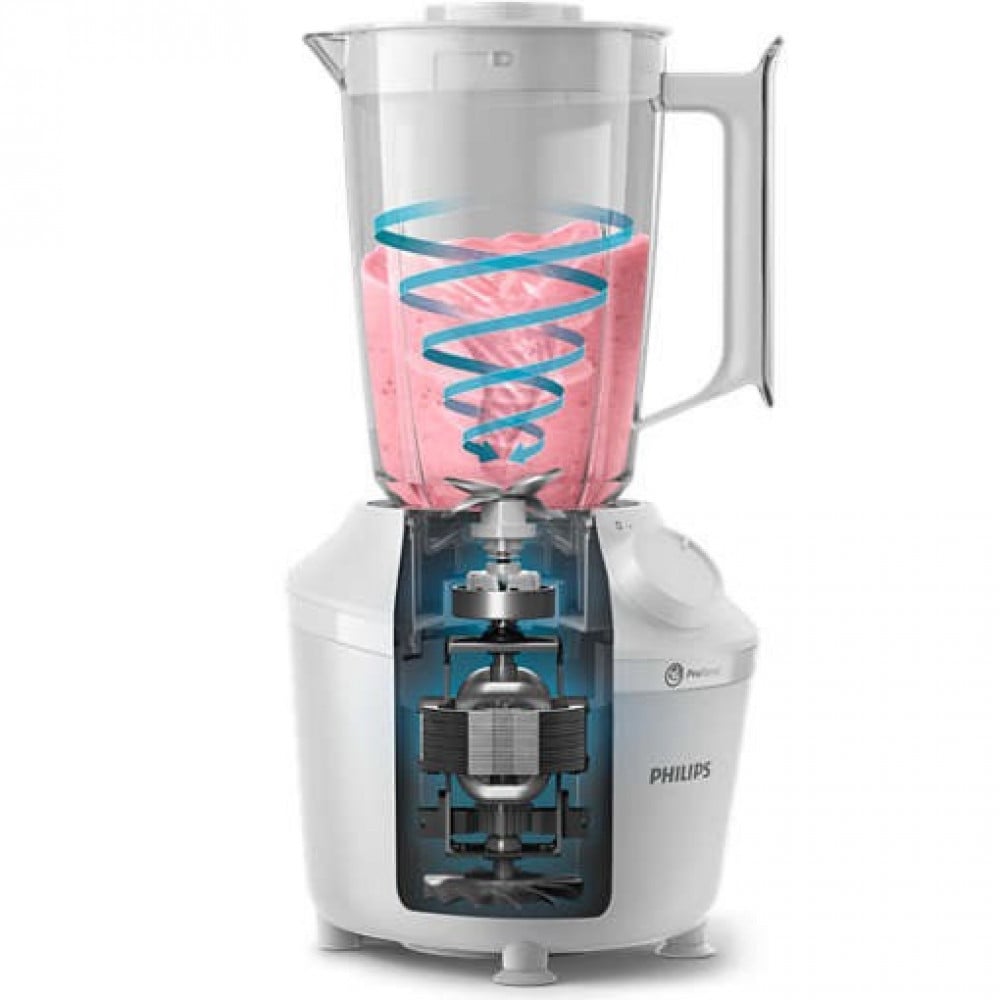 يجمع نظام ProBlend الفريد 3 تقنيات، وهو مصمم خصيصًا لضمان قوام سلس بدون كتل في 45 ثانية فقط*. يشغّل المحرك بقوة 450 واط مسار الخلط، لتوزيع كل المكونات بطريقة متساوية، فيما تتميّز الشفرة بتصميم مبتكر لزيادة مساحة القص إلى أقصى حد. أخيرًا وليس آخرًا، تم تصميم الدورق مع أضلع فريدة لتوجيه المكونات باستمرار نحو مسار الخلط.