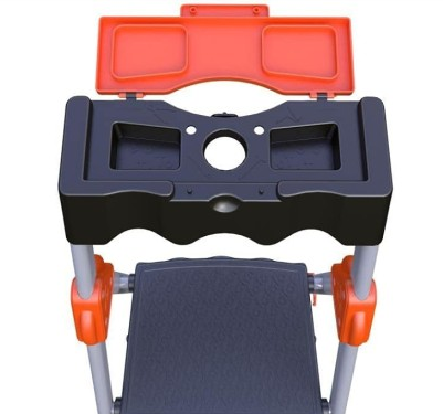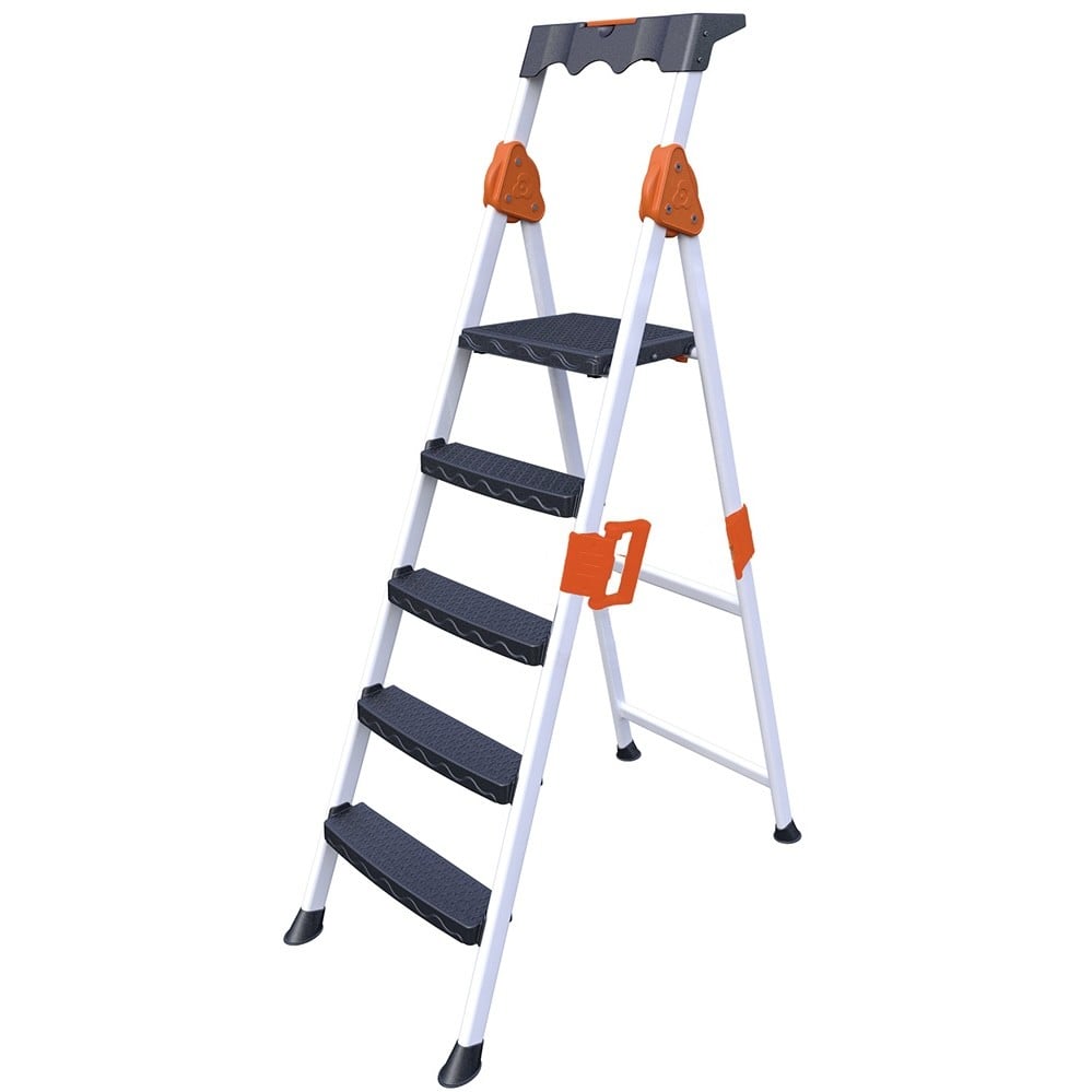 يوجد في الجزء العلوي من السلم علبة بغطاء لتخزين البراغي والمسامير والمفكات وما إلى ذلك.