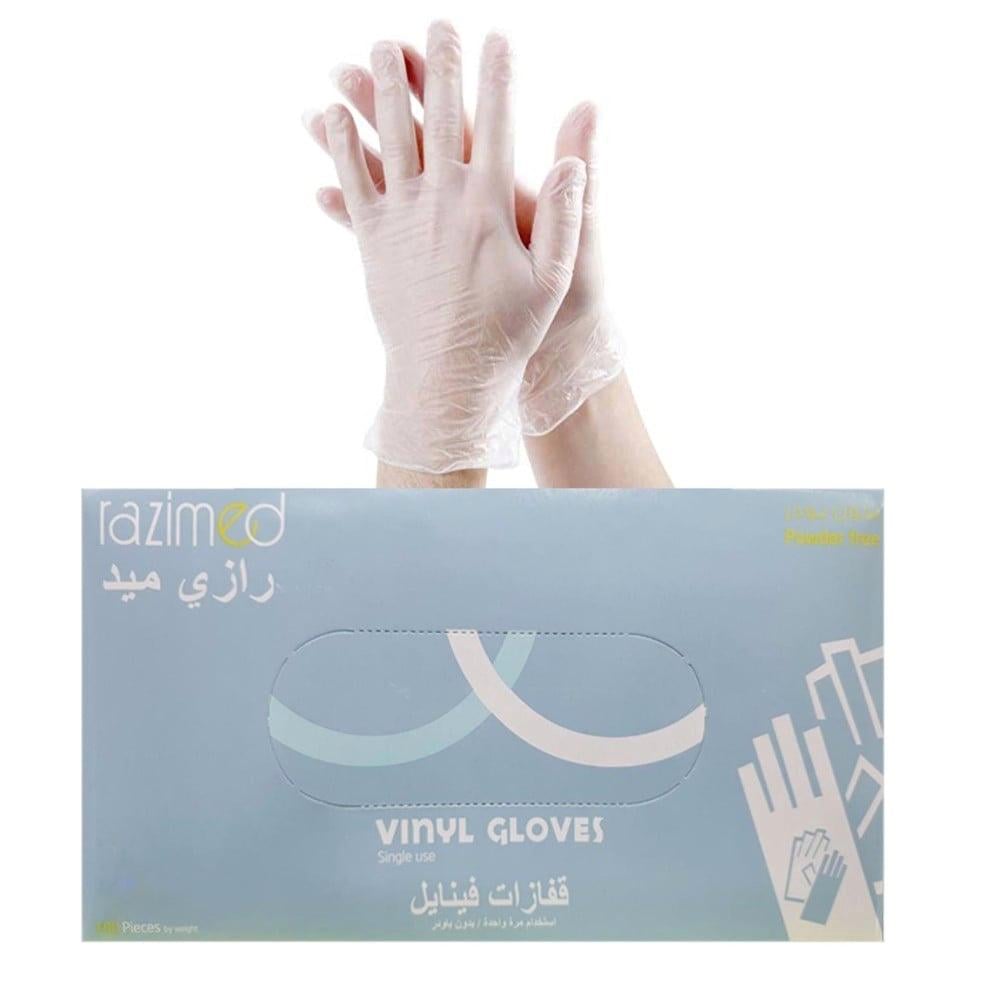 قفازات طبية فينايل بدون بودر 100 حبة مقاس L رازي ميد razimed