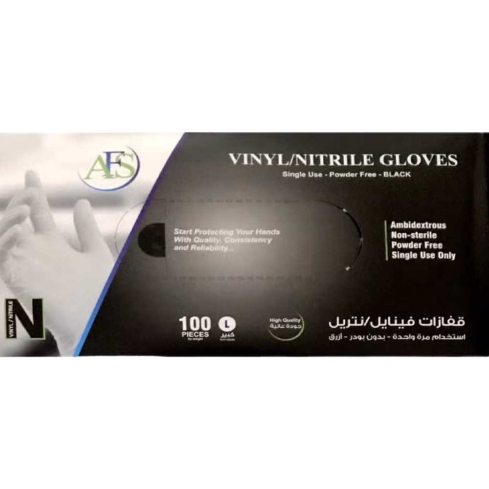قفازات فينايل/نتريل لون اسود 100 قفاز مقاس L