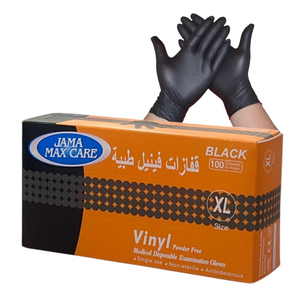 قفازات فينايل 100 قفاز لون أسود مقاس XL