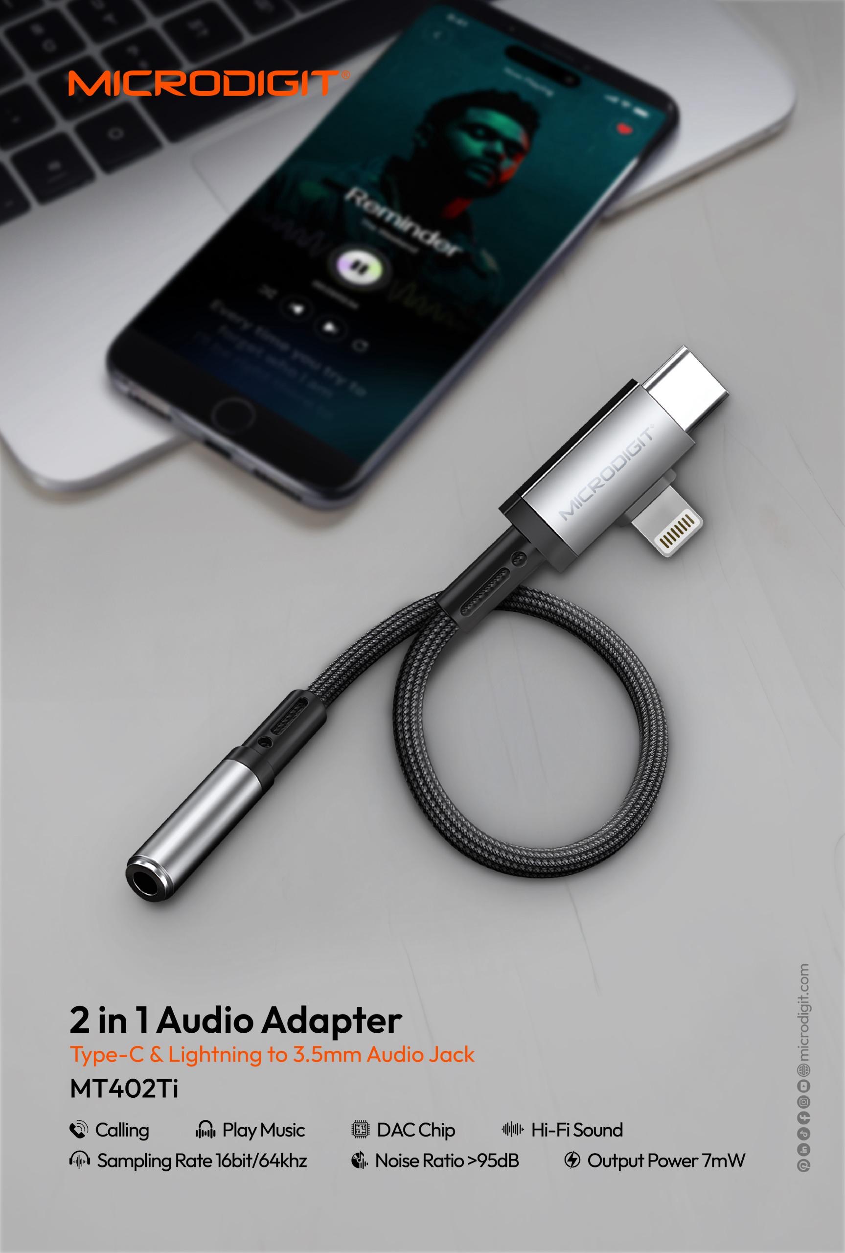 كابل محول صوت 2 في 1 تايب سي و ايفون مايكروديجيت MT402I
