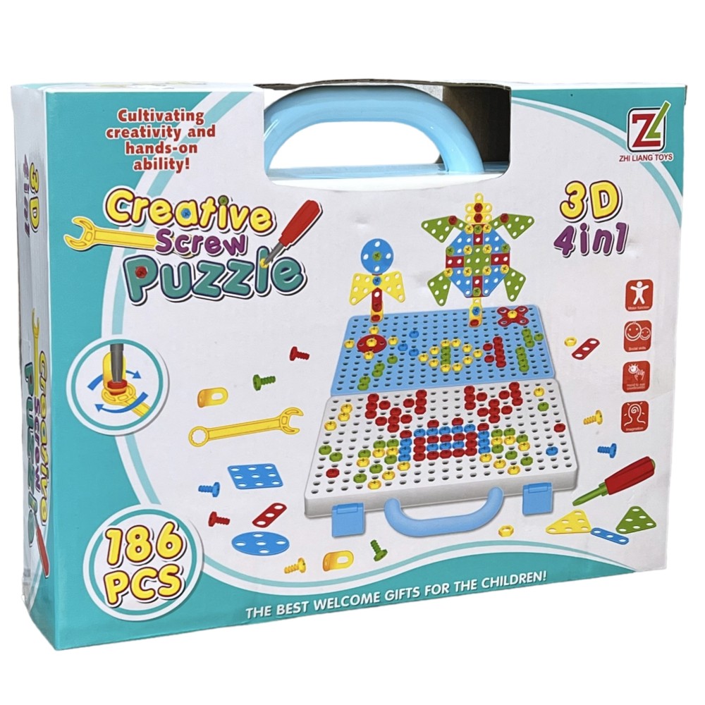 لعبة تركيب براغي ومكعبات بناء ثلاثية الأبعاد 4 في 1 186 قطعة