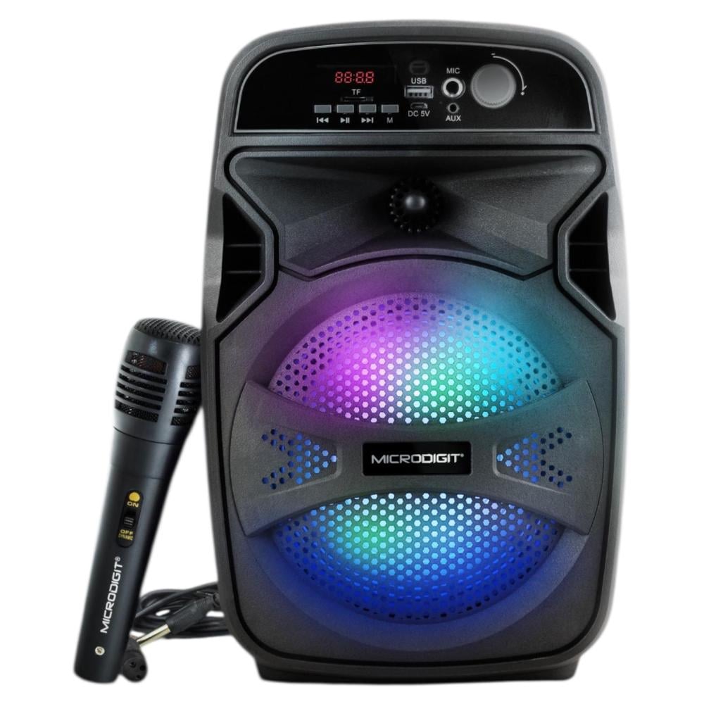 مكبر صوت مايكروديجيت MD686PS الجديد كليًا، بميزات متطورة مصممة خصيصًا لمنحك تجربة موسيقية لا مثيل لها، من حفلات الشاطئ إلى نزهات الصحراء. يُصدر جهاز مايكروديجيت المتين للحفلات صوتًا رائعًا مع مكبر صوت قوي مقاس 6.5 بوصة ومكبر صوت عالي التردد، مما يجعل أي بيئة مكانًا مثاليًا للرقص، ويضمن استمرار الحفل مع إمكانيات ترفيهية لا حصر لها. كما يتضمن ميكروفونًا سلكيًا لإظهار موهبتك الغنائية.