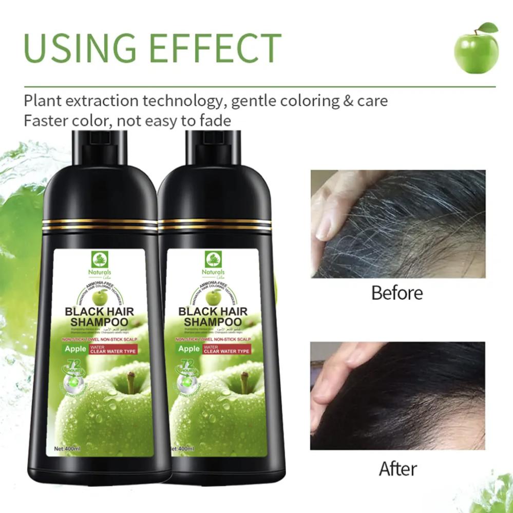 - تغميق الشعر بشكل طبيعي: يعمل الشامبو على تغميق لون الشعر تدريجياً، مما يمنح الشعر لوناً أسود لامعاً وطبيعياً.