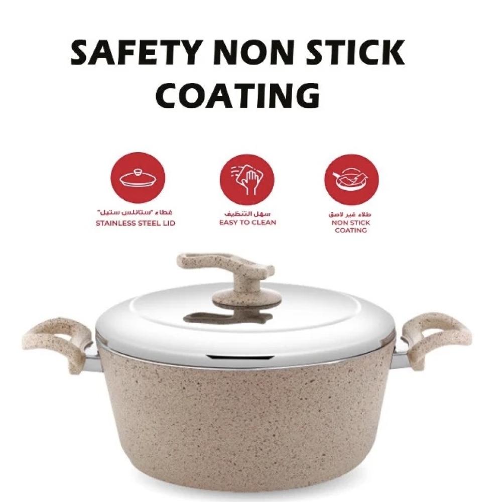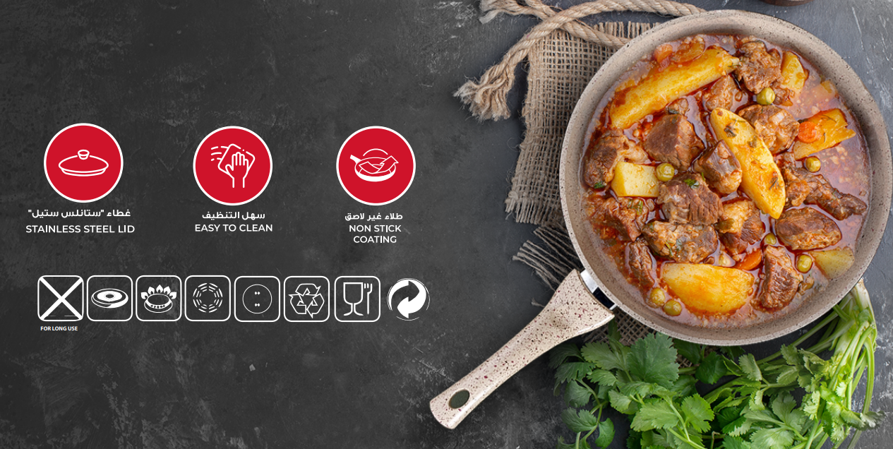• مُزوّد بقاعدة سميكة توزّع الحرارة بتساوٍ مما يساعد في الحفاظ على نكهة الطعام وتجانسه .