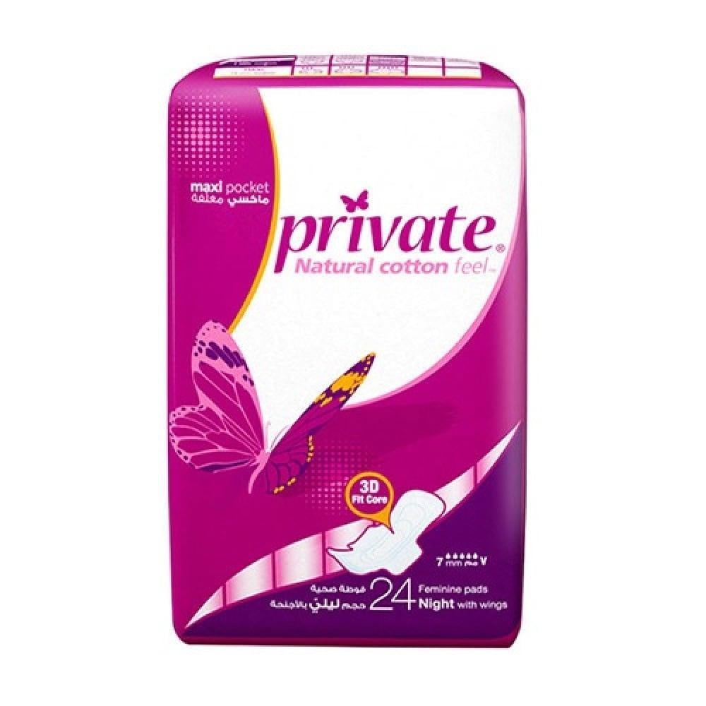 فوط صحية برايفت 24 فوط حجم ليلي بالاجنحة