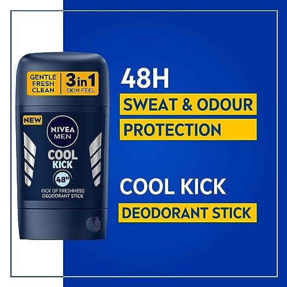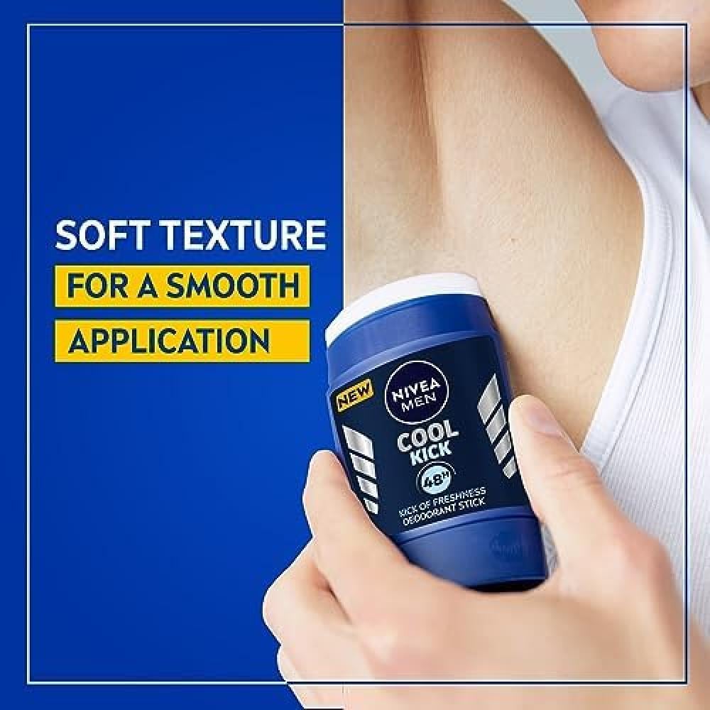 يوفر مزيل العرق NIVEA MEN Cool Kick حماية موثوقة لمدة 48 ساعة ونضارة منعشة بفضل تركيبته Cool Care التي تترك البشرة تشعر بالنظافة والانتعاش.