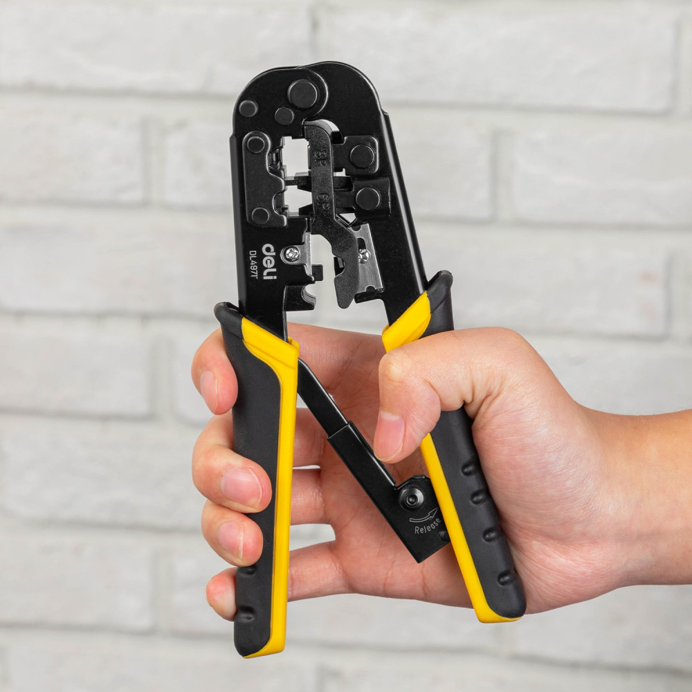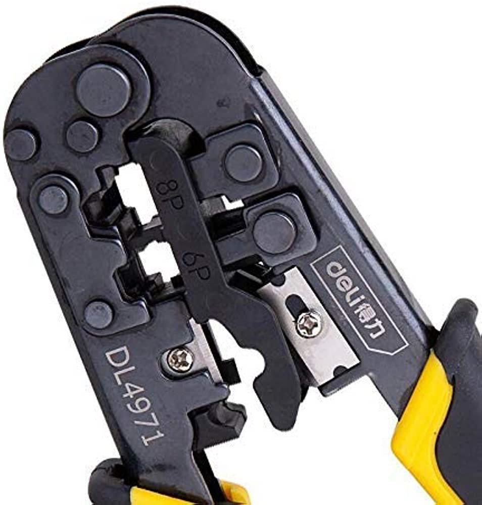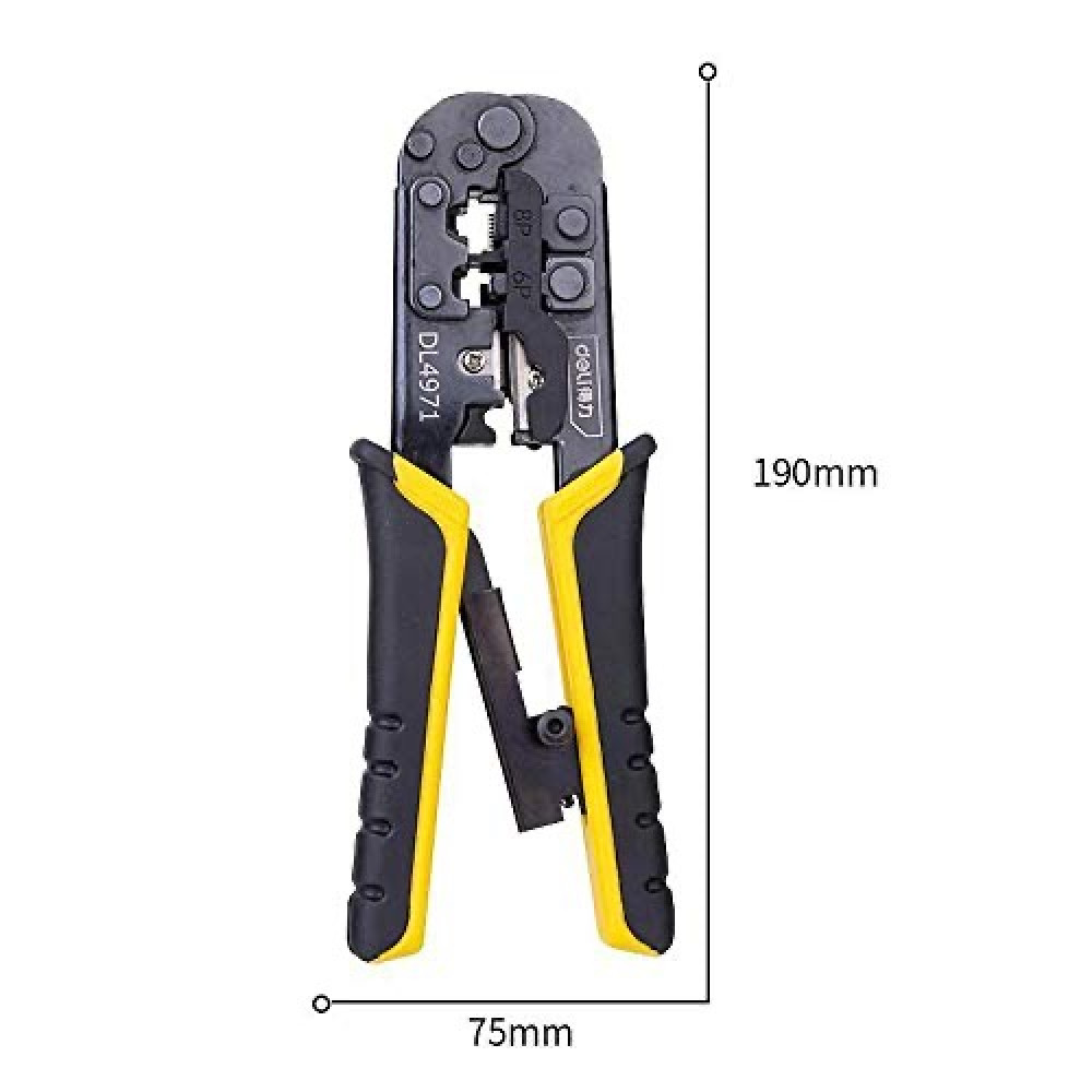 Labor-saving ratchet mechanism, better crimping effect Complete functions for cutting and stripping UTP/STP round twisted pair and flat telephone line, etc.