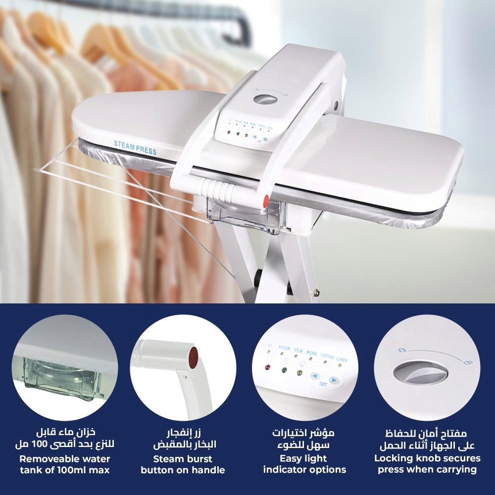 مكواة البخار الرقمية من بامكو حجم 36 بوصة هي خيار فعال سيجعل كي ملابسك أمرًا سهلاً وبسيطًا. المؤشر يضيء مؤشر الطاقة باللون الأحمر أما الضوء الأخضر يعني أنه جاهز ، أما اللون الأصفر فيعني انه جاهز للبخار. يوجد زر على كل جانب من المقبض لسهولة الاستخدام. وزجاجة بخاخ. خزان ماء قابل للإزالة.